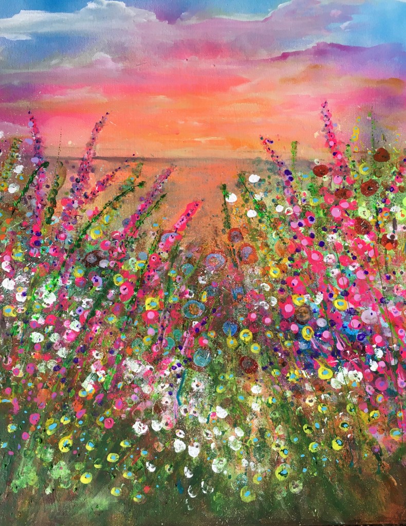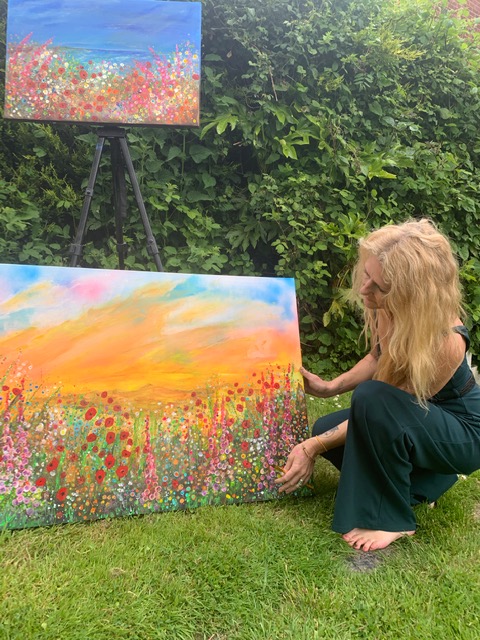 I am a local artist based in Devon painting our beautiful landscape and meadows mostly with fingers all my work is original and unique and I do not sell prints. I take commissions and have paintings exhibited across the Country